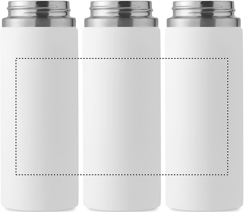 Kaksiseinäinen kierrätetystä ruostumattomasta teräksestä (90 % kierrätettyä ruostumatonta ja 10 % ruostumatonta terästä) valmistettu eristetty tyhjiöpullo, jossa on PP:stä valmistettu kahvallinen korkki ja sisäänrakennettu pilli. Vuotamaton. Tilavuus: 500 ml.
