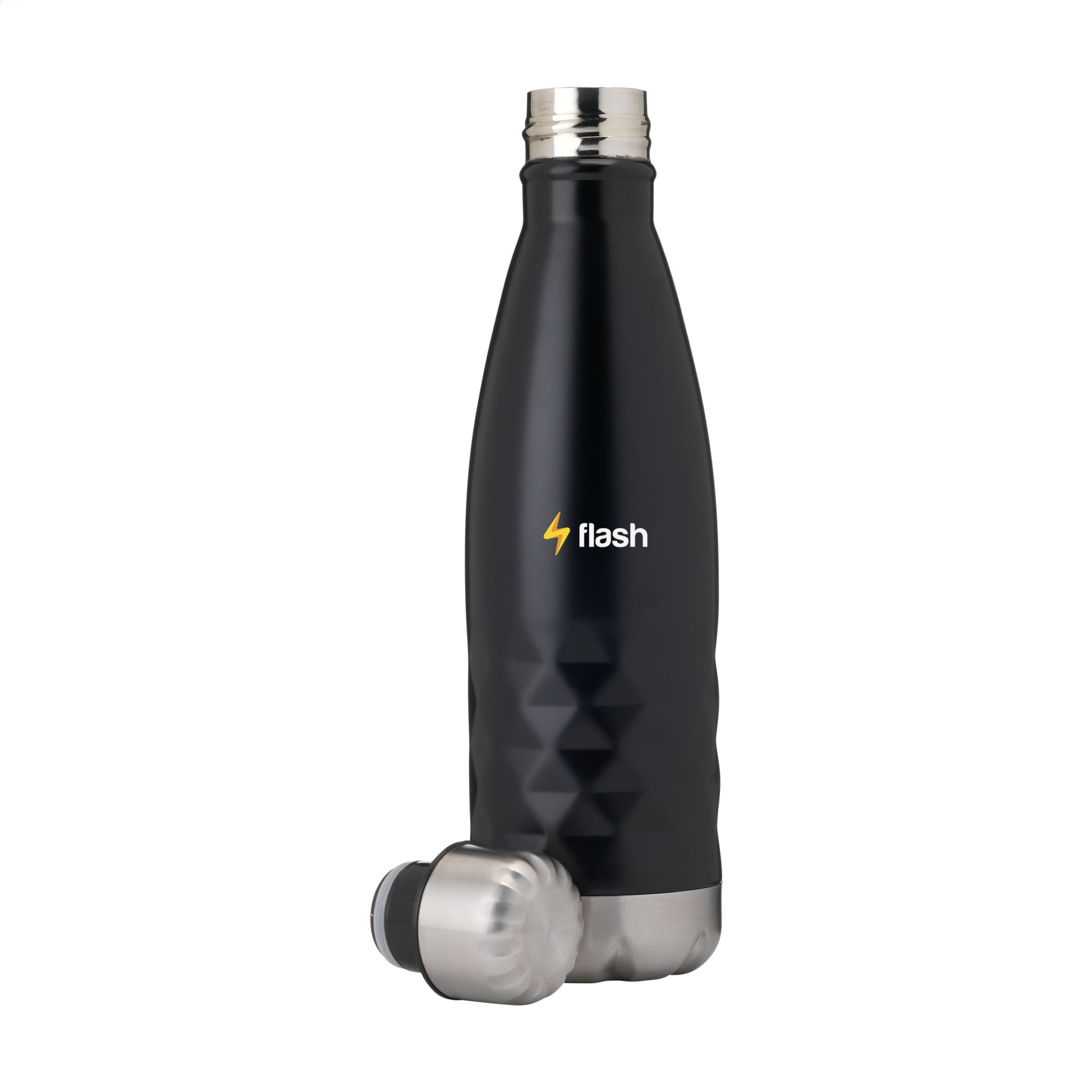 Kaksiseinäinen, vuotamaton ruostumattomasta teräksestä valmistettu vesipullo/termopullo, jossa erottuva geometrinen 3D-timanttikuvio. Soveltuu kylmän tai kuuman veden lämpötilan ylläpitämiseen. Tilavuus 500 ml. Jokainen tuote on pakattu erikseen.