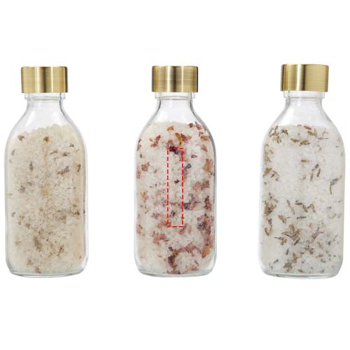 Lahjasetti "Just Relax" sisältää 3 x 200 ml Kuolleenmeren kylpysuolaa kirkkaassa lasipullossa, jossa on messinginvärinen teräskorkki. Jokaisessa pullossa on erilainen tuoksu: Ruusu, laventeli ja kamomilla. Eikö kotona ole kylpyammetta? Kylpysuolaa voidaan käyttää myös väsyneiden jalkojen virkistämiseen ja rentouttamiseen. Täydellinen lahja jokaiseen tilaisuuteen. Valmistettu Alankomaissa.