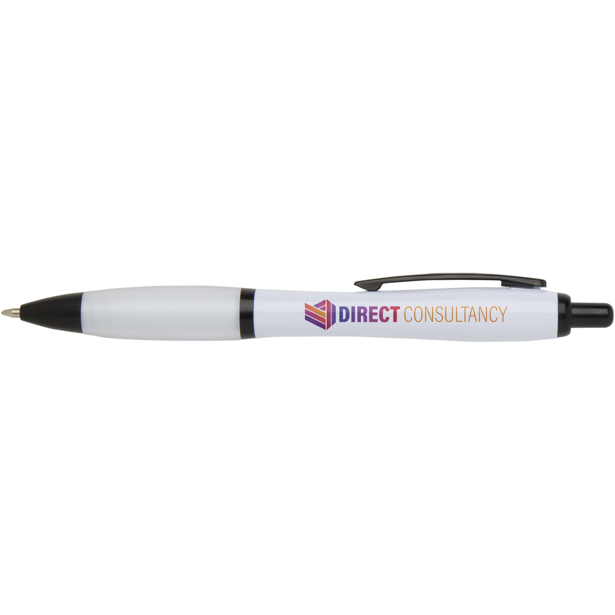 „Nash“ perdirbto plastiko rutulinis rašiklis su juodais apvadais (juodas rašalas), Balta