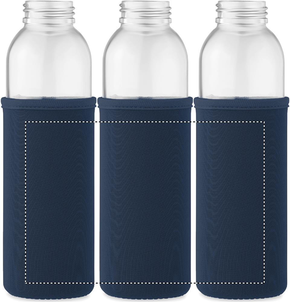 Perdirbto stiklo butelis su neopreno maišeliu ir PP dangteliu su silikonine kabykla. Nesandarus. Talpa: 500 ml.