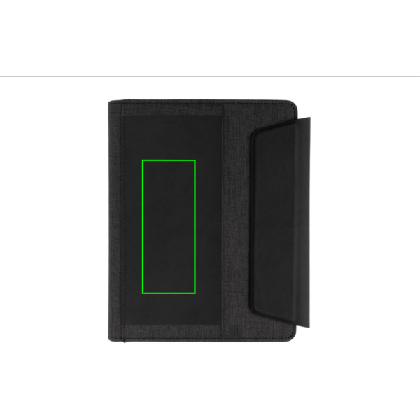 Оставайтесь организованными и эффективными с этим прекрасным беспроводным портфелем формата A5! Он предлагает возможность беспроводной зарядки, чтобы вы всегда были на связи. Входящий в комплект внешний аккумулятор можно использовать отдельно. Этот элегантный портфель оснащен встроенной беспроводной зарядной подставкой для телефона, эластичной петлей для ручки и дополнительными сетчатыми карманами. В комплект входят 64 листа/128 страниц линованной бумаги кремового цвета плотностью 70 г/м². Изготовлен из полиэстера и полиуретана. Вход: 5 В/2 А; Выход: 5 В/2 А. Беспроводной вход 5 В/2 А, выход 5 В/1 А. Поставляется в полноцветной подарочной коробке.