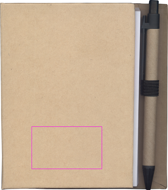 Экологичный блокнот на 200 страниц, желтые стикеры (25 листов), пять разноцветных полосок для маркировки (по 25 полосок каждого цвета) и шариковая ручка. Мы напечатаем ваш логотип на обложке.