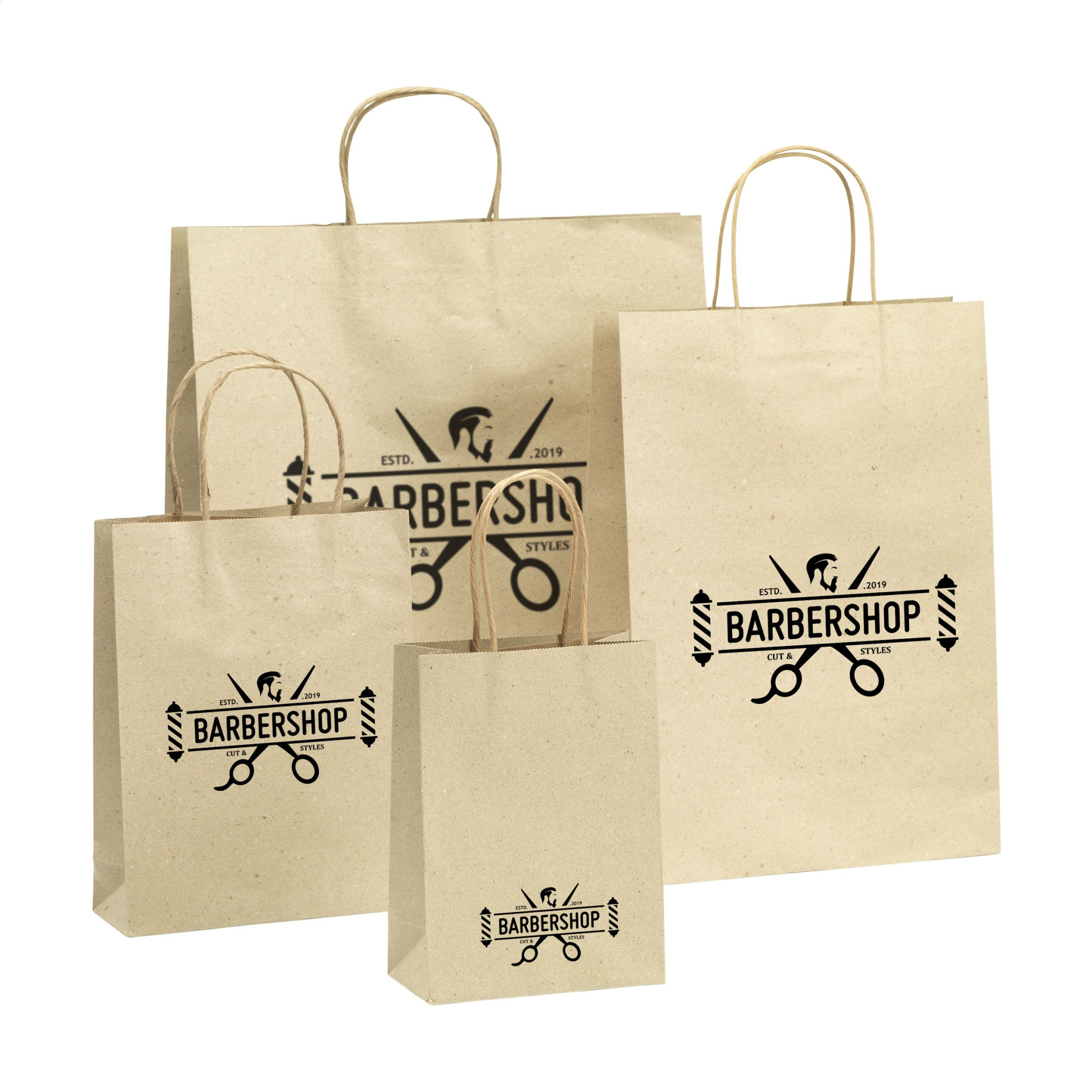 WoW! Прочный подарочный пакет из ЭКО-бумаги (размер M) из переработанной травяной бумаги (120 г/м²). Благодаря использованию натуральных материалов неровности бумаги можно увидеть и/или почувствовать. Это придает изделию красивый естественный вид. Пакет имеет две короткие петли для переноски бумаги, сложенное дно и боковую складку. Для производства этого пакета не вырубаются деревья.