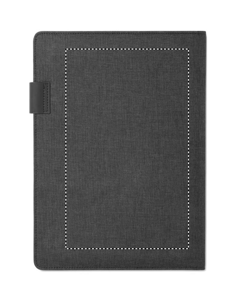Папка формата А4 с аккумулятором ёмкостью 4000 мАч, подставкой для телефона или планшета, отделениями для ручек и карточек. Каждый лист разлинован и имеет календарь. Покрытие софт тач внутри, снаружи непромокаемый полиэстер.