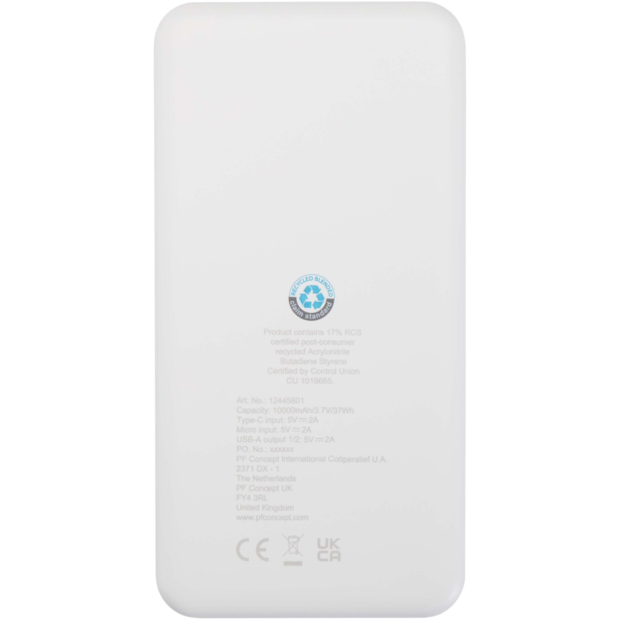 Портативное зарядное устройство Intan из переработанной пластмассы емкостью 10 000 мАч, Белый