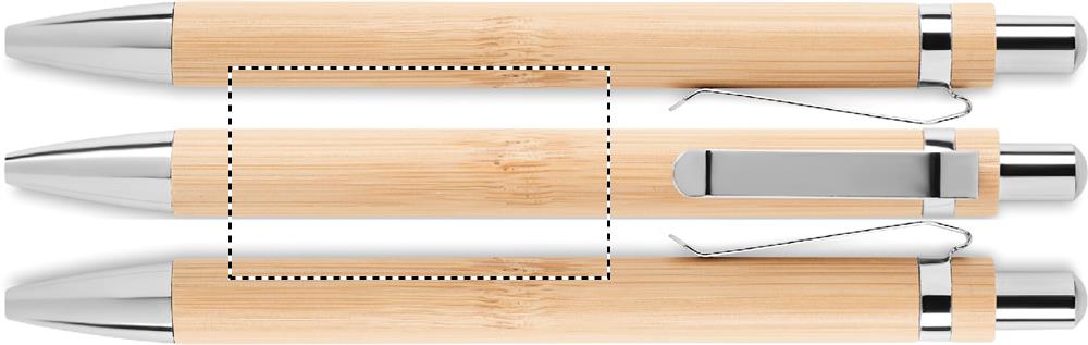 Долговечная нажимная ручка без чернил в бамбуковом корпусе с блестящей хромированной фурнитурой. Наконечник из металлического сплава по мере того как вы пишете окисляет поверхность бумаги.