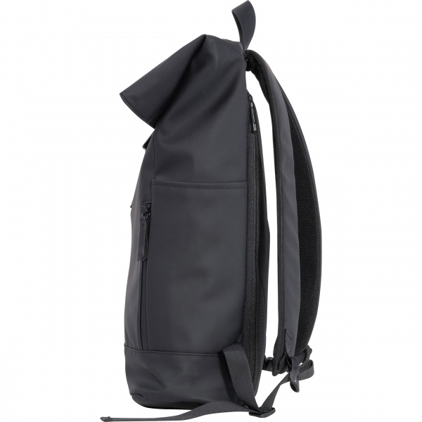 Рюкзак для ноутбука из полиуретана (PU) для ноутбуков с диагональю 15–16 дюймов. Он имеет два отделения на молнии спереди, два боковых накладных кармана, большое основное отделение с сетчатыми вставками и секциями на молнии, отделение для ноутбука с мягкой подкладкой сзади, мягкие плечевые ремни, ручку для переноски и регулируемую застёжку основного отделения. Ваш логотип нанесён в нижней трети лицевой стороны.