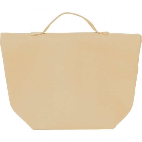 Сумка-холодильник из переработанного хлопка и полиэстера. Сумка оснащена ручкой для переноски, широкой застёжкой-липучкой и передним карманом. Ваш логотип напечатан на переднем кармане.