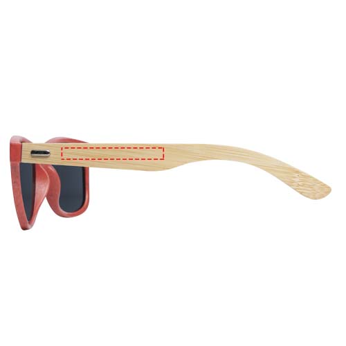 Эти солнцезащитные очки в ретро-стиле, изготовленные согласно принципам устойчивого развития, являются идеальным сувениром, который можно подарить во время промо-акций на летних фестивалях, мероприятиях и во время других событий на свежем воздухе в солнечную погоду. Оправа изготовлена из пластика и бамбука, что сокращает использование первичного пластика. Доступна в нескольких модных цветовых вариантах. Невесомые дужки с удобной посадкой изготовлены из бамбука, полученного из устойчивых, а также экологически и социально ответственных источников. Эти очки соответствуют стандарту EN ISO 12312-1, имеют линзы со степенью защиты UV400, которые относятся к категории 3, что делает их идеальным выбором для защиты от яркого солнечного света. В качестве экологически чистого варианта декорирования рекомендуется лазерная гравировка.