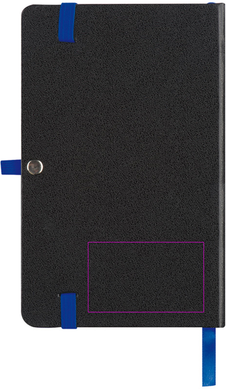 Блокнот с черной обложкой из полиуретана и 160 линованными страницами. Элегантный вид благодаря красочным акцентам. Мы напечатаем ваш логотип на обложке.