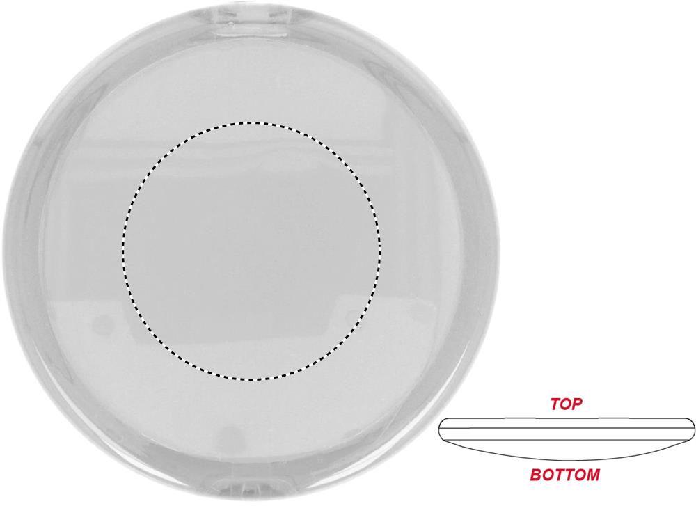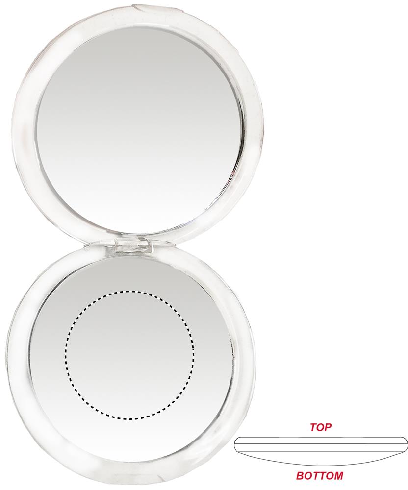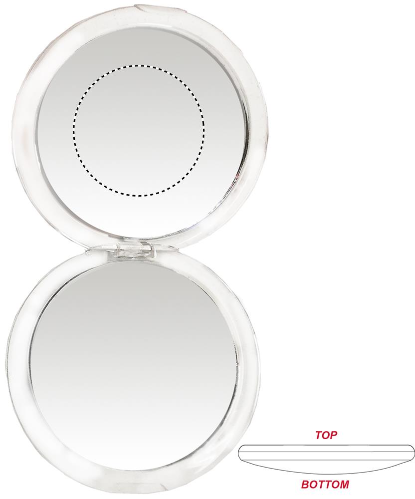 Круглое двойное зеркальце в пластиковом полупрозрачном корпусе.