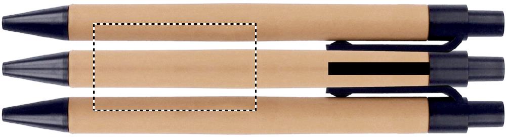 A6 anteckningsblock med bambuomslag och 70 linjerade blad i återvunne papper. Inkluderar matchande återvunnen kulspetspenna med PLA-spets och klips. Blått bläck.