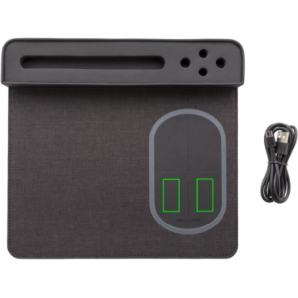 Ladda snabbt upp din smartphone via kabel eller en Qi-certifierad enhet trådlöst genom att enkelt placera den på musmattan. Den eleganta, tunna rektangulära musmattan med anti-slip på baksidan har ett telefonställ och 4 pennhållare. 1.5m kabel medföljer. Input: 5V/1A; Output 5V/1A; Trådlös output: 5V/1A 5W.