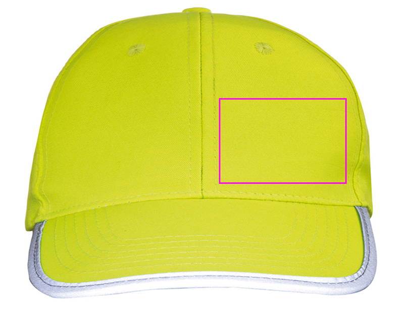 Baseballkeps för barn av polyester med reflekterande passpoal på visiret och kardborrestängning. Vi trycker din logotyp i mitten av pannan.