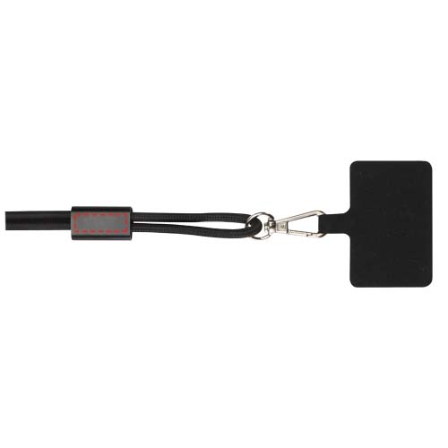 Logotrade presentreklam bild: Funi nyckelband för smartphone av återvunnen plast med inbyggd datasynkroniseringskabel och 100 W snabbladdande 5-i-1-kabel