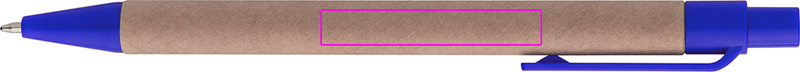 Kulspetspenna av återvunnet papper och färgade plastapplikationer, blå skrift. Din logotyp är tryckt till höger om klippet.