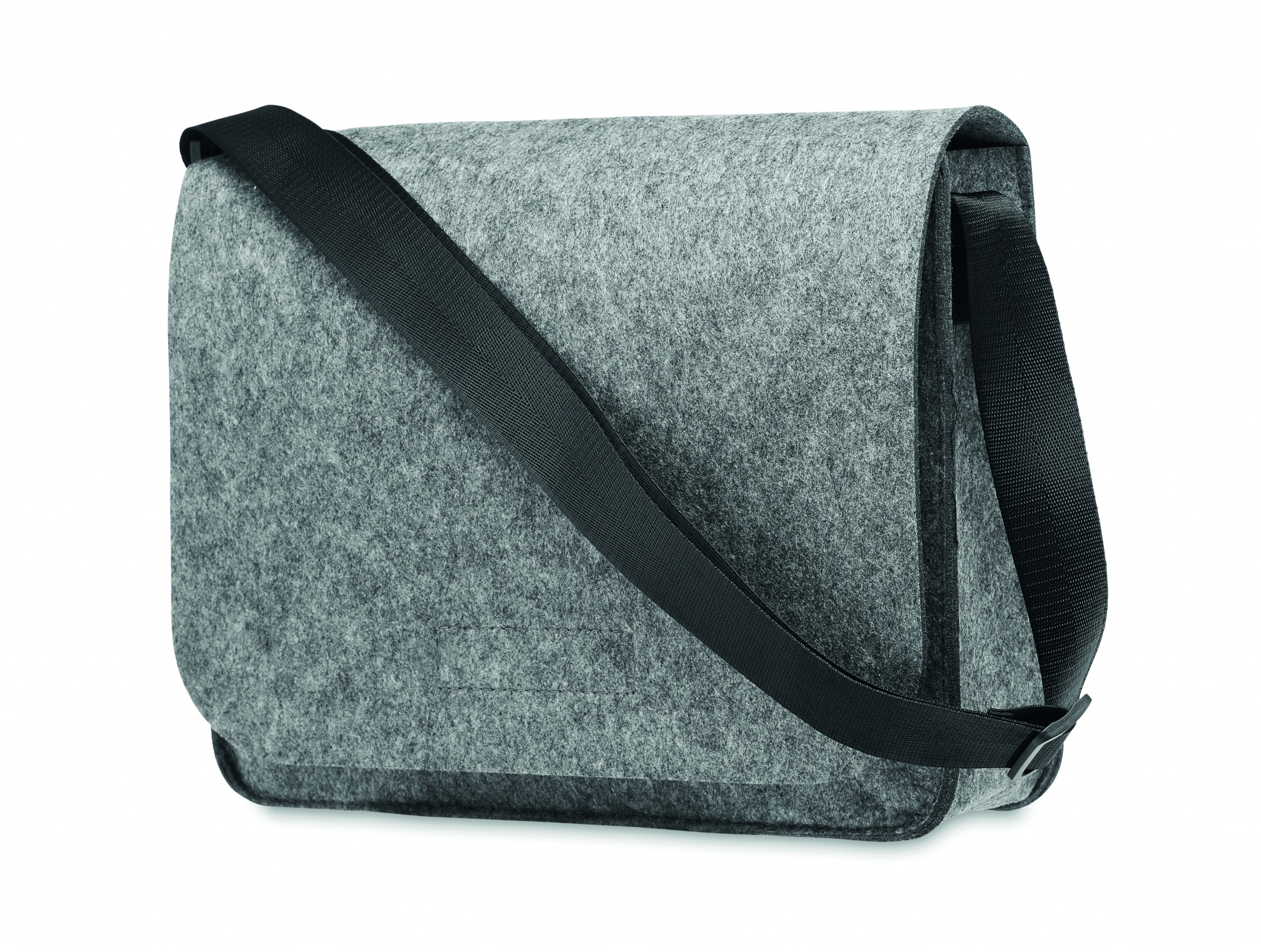 Snygg väska i kraftig RPET filt med långa handtag och bälg i botten.