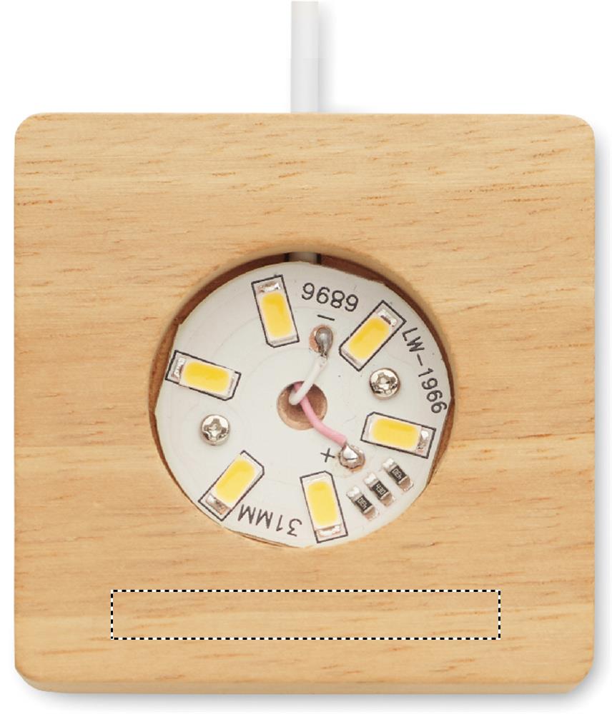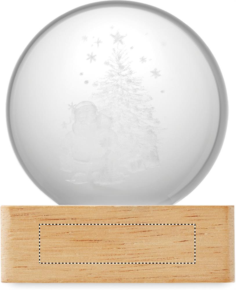 Julkula i kristall med LED-ljus (100 lumen) och julmönster inuti på bas av gummiträ. USB-laddningskabel (90 cm) ingår.