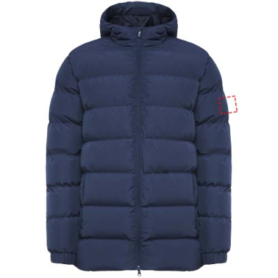 Vadderad sportparkas. Huva med topp. Dragkedja framtill med matchande löpare och hakskydd. Elastiska muddar. Två sidfickor med dragkedja. Invändig bröstficka på vänster sida. Inre åtkomst för hantering. Borttagbar etikett. Vattentät. Vindtät.
