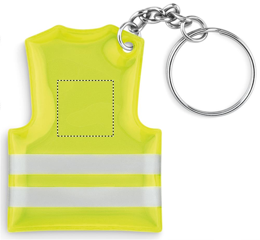 Nyckelring i form av en reflexväst i reflekterande PVC.