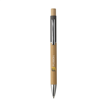 WoW! Kulspetspenna med blått bläck med cylinder och tryckknapp gjord av FSC 100% certifierad bambu. Metallklämma. Toppen av pipan är täckt med en snygg gummerad beläggning.