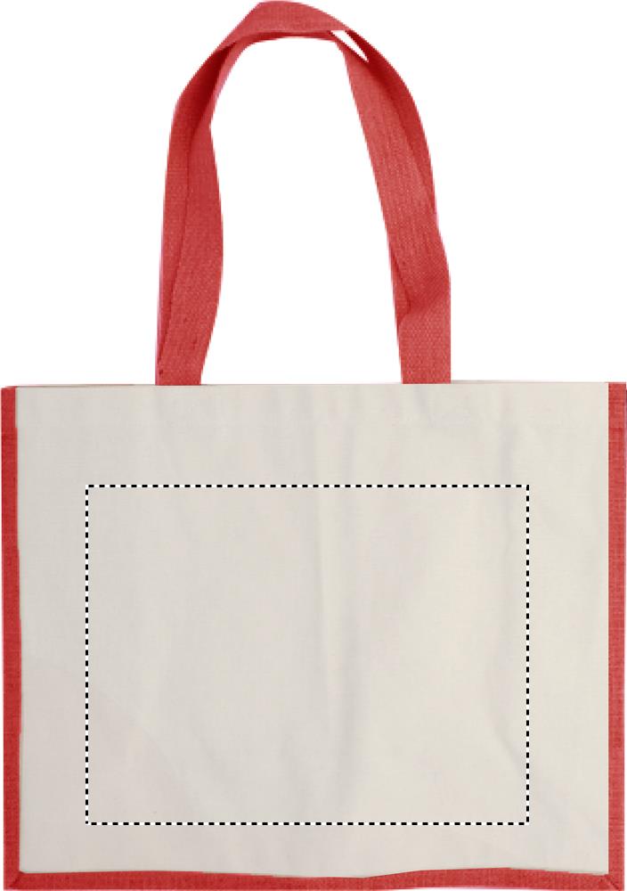 Shoppingkasse i laminerad Jute med front i canvas och bomull. Långa handtag.