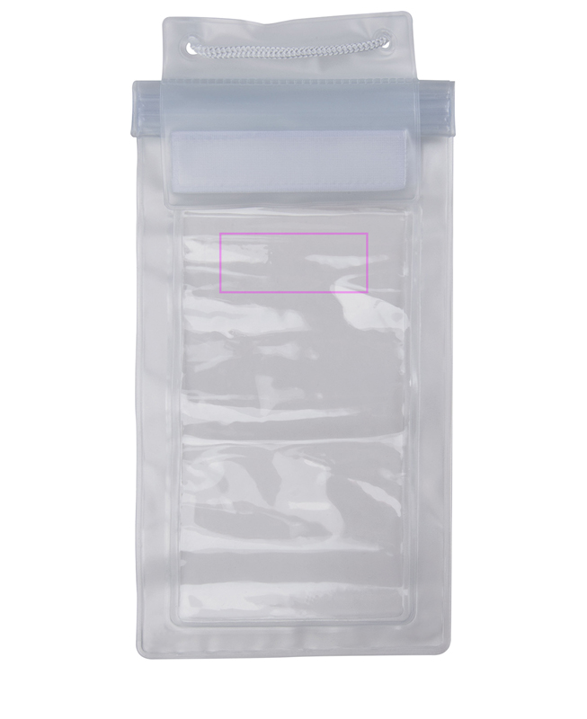 Vattentätt telefonfodral med ögla och paniklås. Vi trycker din logotyp centrerad på väskan.